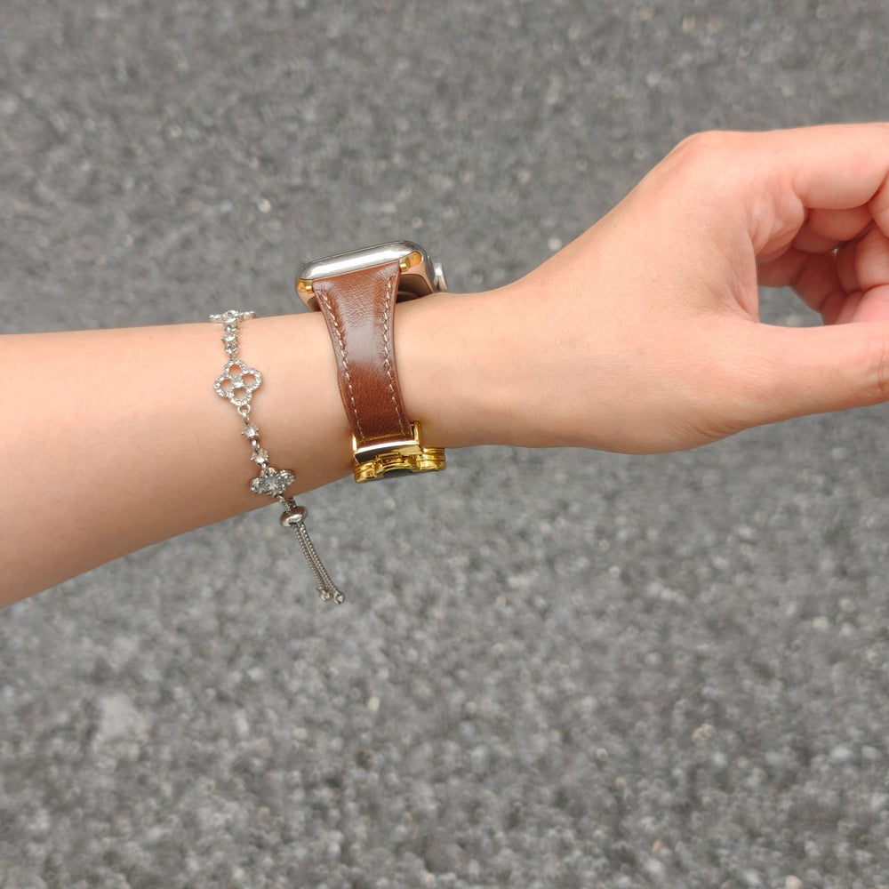 Crafted from Ultra-soft, double-sided top-grain calfskin, this band offers a silky-smooth, skin-friendly feel that brings luxurious comfort to your Apple Watch. The fine calf leather’s natural texture ensures each band is unique, while the premium vacuum-plated metal magnetic clasp provides a secure and elegant closure.