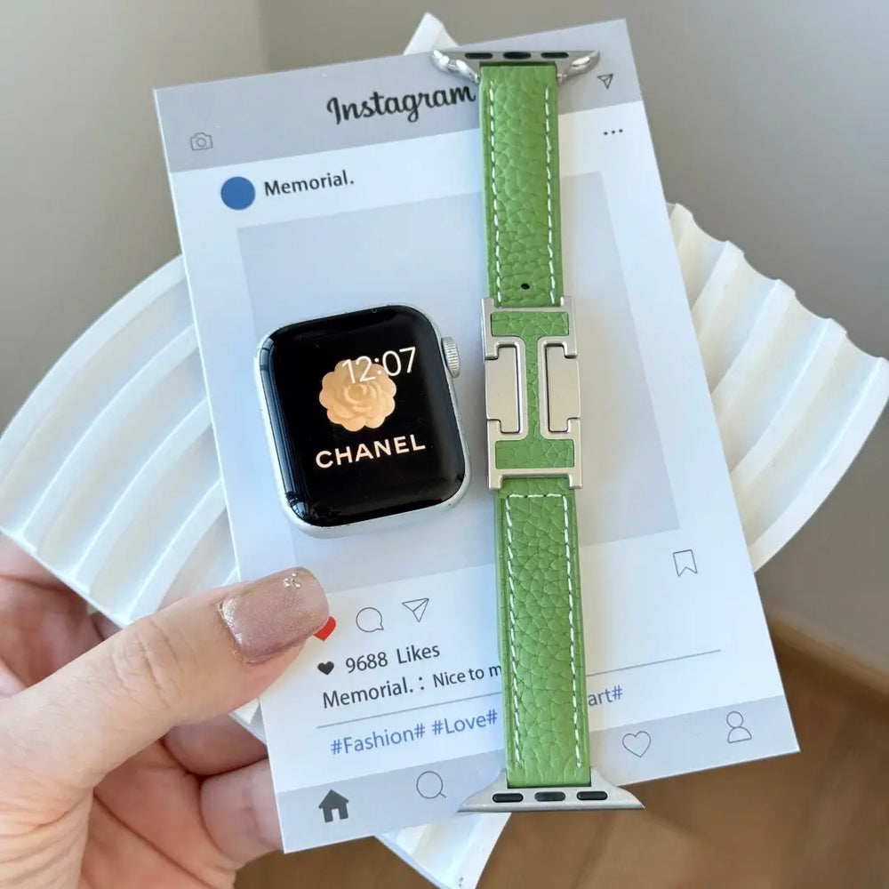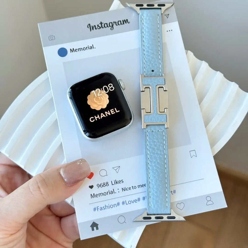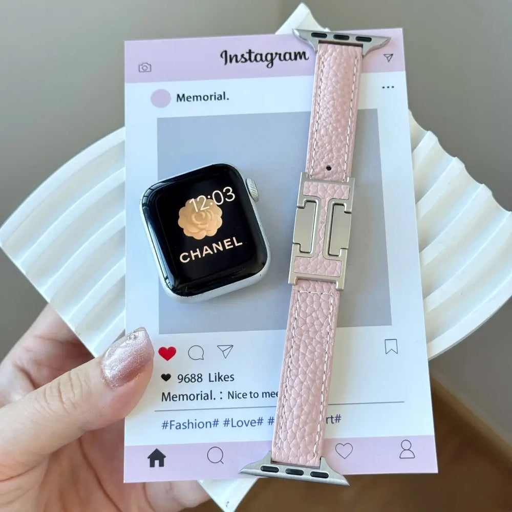 Crafted from high-quality genuine leather with a refined pebbled texture, this slim strap wraps comfortably around your wrist while adding a touch of understated luxury. The unique hourglass silhouette enhances the feminine fit, while the signature H-style magnetic buckle ensures effortless wear and a secure hold.