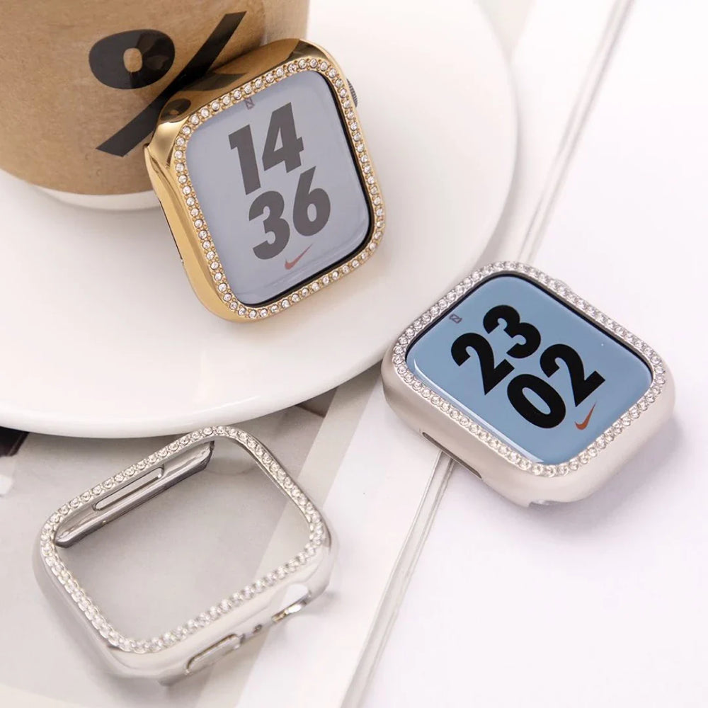 Designed for those who love to sparkle, the Luxury Rhinestone Apple Watch Case brings full-edge protection and high-fashion glamour to your daily wear. Featuring a sleek glossy finish and hand-set rhinestones that shimmer from every angle, this case is the perfect blend of style and strength.
